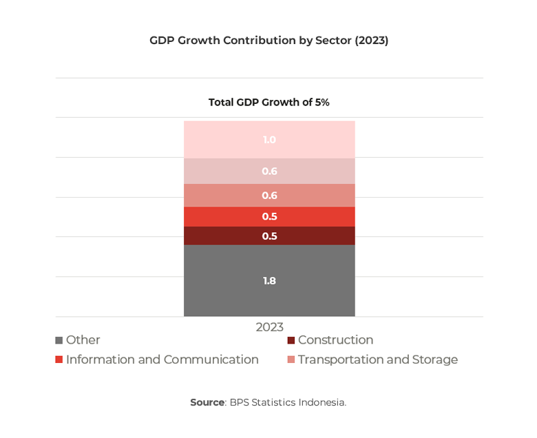 Indonesia maintained strong momentum as its economy closed out 2023 with a GDP (Gross Domestic Product) growth rate of 5% This indicates a return to pre-pandemic growth levels despite global headwinds. It places Indonesia’s performance among the region’s economies with Vietnam, Malaysia and Thailand experiencing similar or lower growth rates at 5%, 3.7% and 2%.