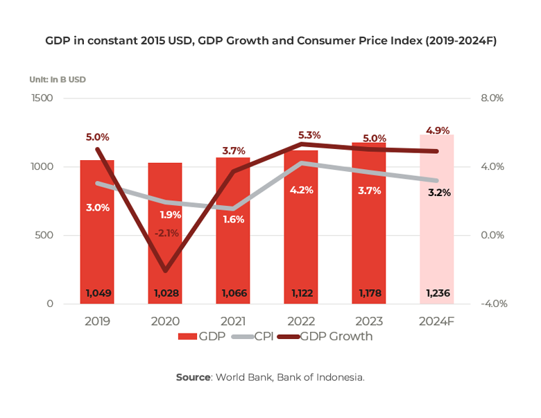 In 2024, Indonesia is projected to sustain its economic growth momentum, with a forecasted GDP growth of 4.9%. Despite this positive outlook, Indonesia, along with several key Southeast Asian economies, continues to face constraints from a lackluster global economic environment and subdued domestic consumption. Nonetheless, these economies persist in outperforming leading global economies.