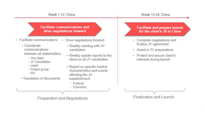 The client had decided to enter the Chinese market by means of setting up a Joint-Venture with a local company in order to decrease the time-to-market and to obtain the necessary capital for the investment.